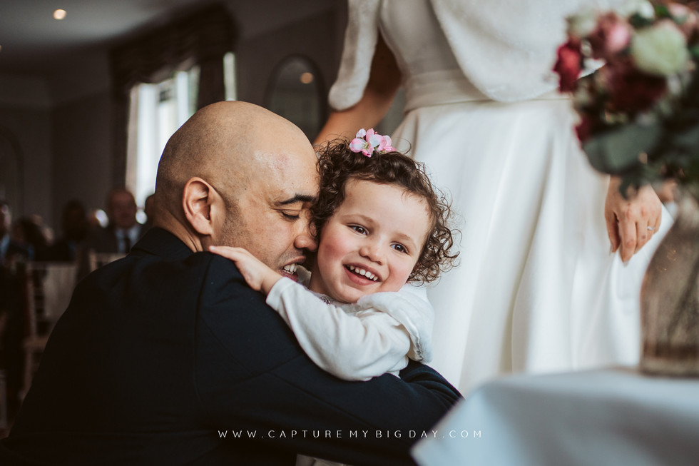 The groom joined us at the hotel with their beautiful little girl Olivia to greet guests at the Devonshire Fell as they arrived for the wedding we have all been waiting for and it wasn’t long before Claire turned all the heads in the room as she made entrance in that amazing dress!