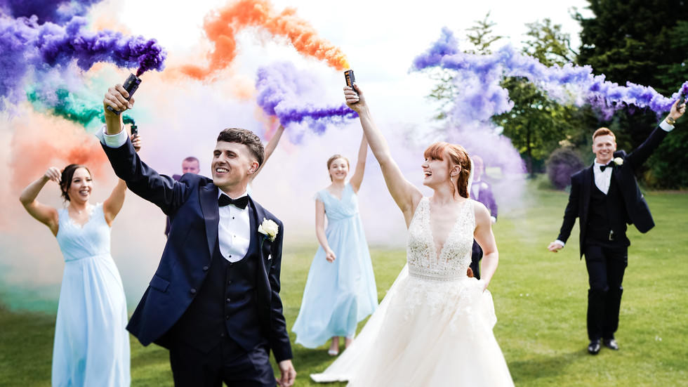 Special thanks must go to the Staff at Wrenbury Hall, who pride themselves on their personal service, and our own thanks must be conveyed to Pete, the Toastmaster. Using his own vehicle, he took us to a local field to capture these stunning long grass photographs. Wrenbury Hall staff were also able to provide additional safety support for the smoke bombs to help create the colourful photographs that represented the joy of the occasion. The Couple’s dancing skills made for some great photographs, and they were really willing to express themselves and enjoy their special day.